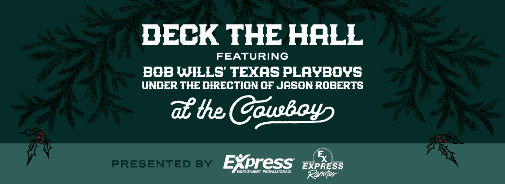 Saddle up and join us for an evening brimming with joyful Western melodies. As the winter chill sweeps across the plains, we are heatin’ things up with Bob Wills’ Texas Playboys. Grab your hat, polish those boots and get ready for a night of festive holiday tunes. We promise an evening of great food, family fun and Christmas cheer, cowboy style.